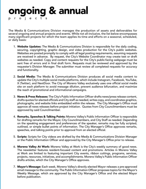 projects, resources, initiatives, and accomplishments. Moreno Valley’s Public Information Officer